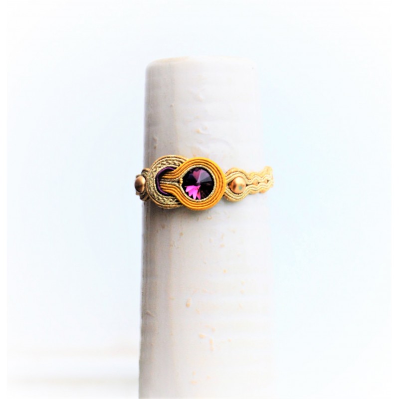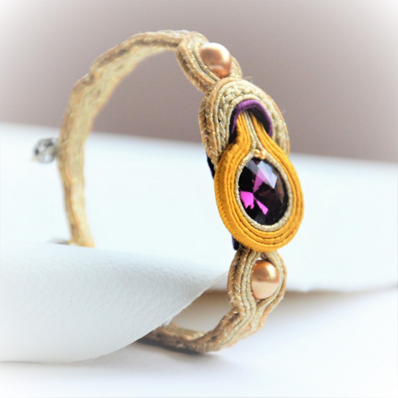 Hand embroidered bracelet with Swarovski crystal, Swarovski pearls, textile cords, glass & miyuki beads
