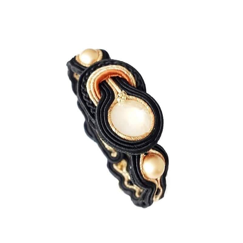 Hand embroidered bracelet with Swarovski crystal, Swarovski pearls, textile cords, glass & miyuki beads