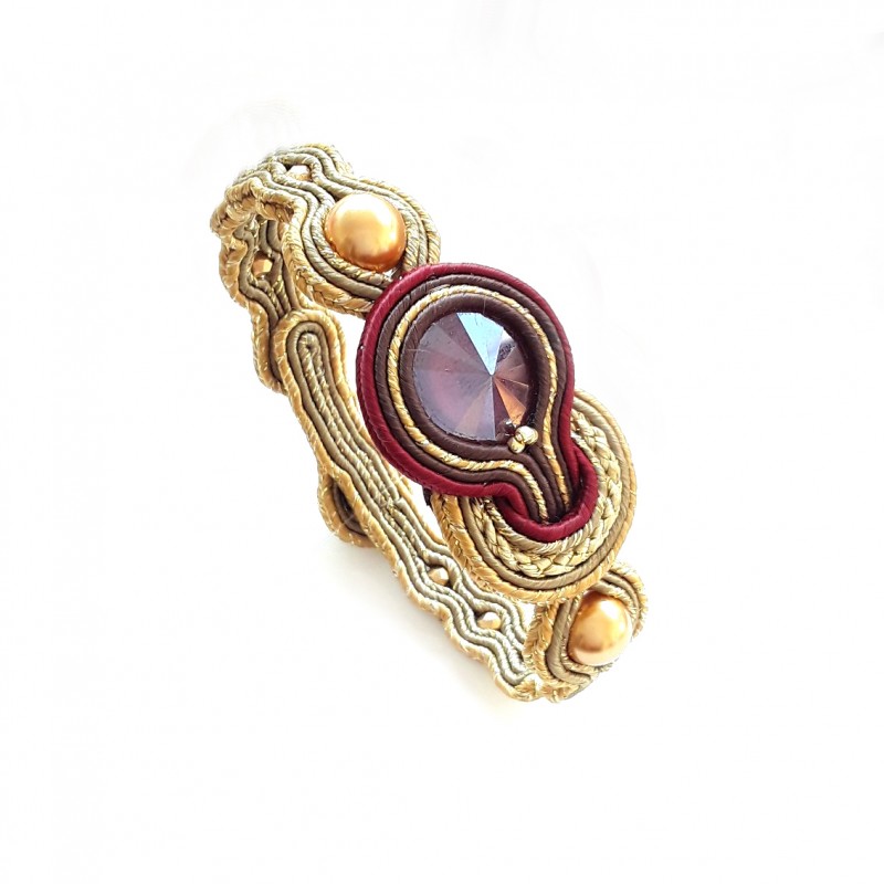 Hand embroidered bracelet with Swarovski crystal, Swarovski pearls, textile cords, glass & miyuki beads