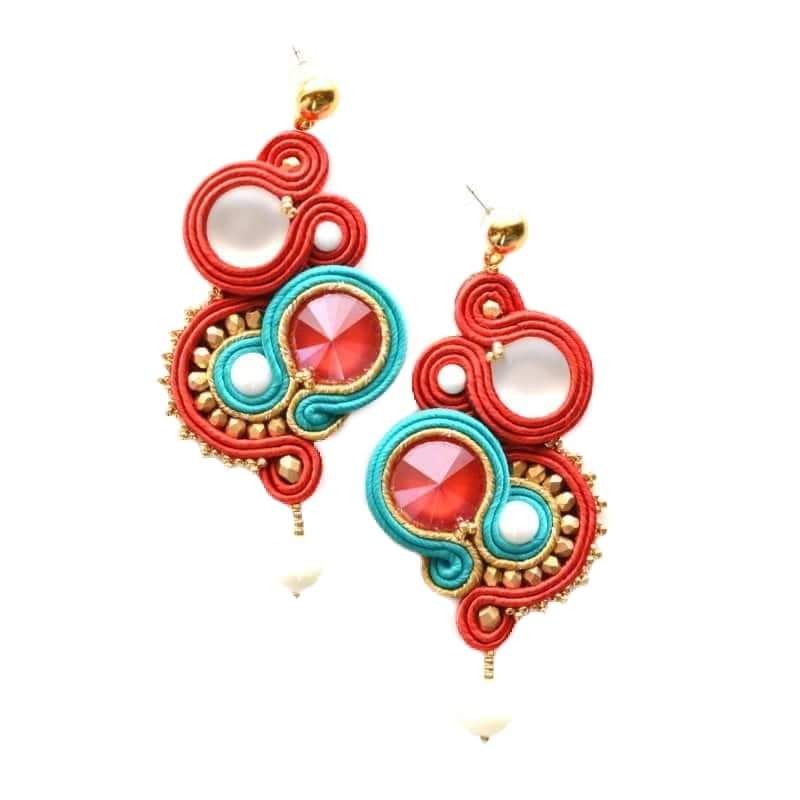 Hand embroidered earrings with Swarovski crystals, glass & miyuki beads, textile cords