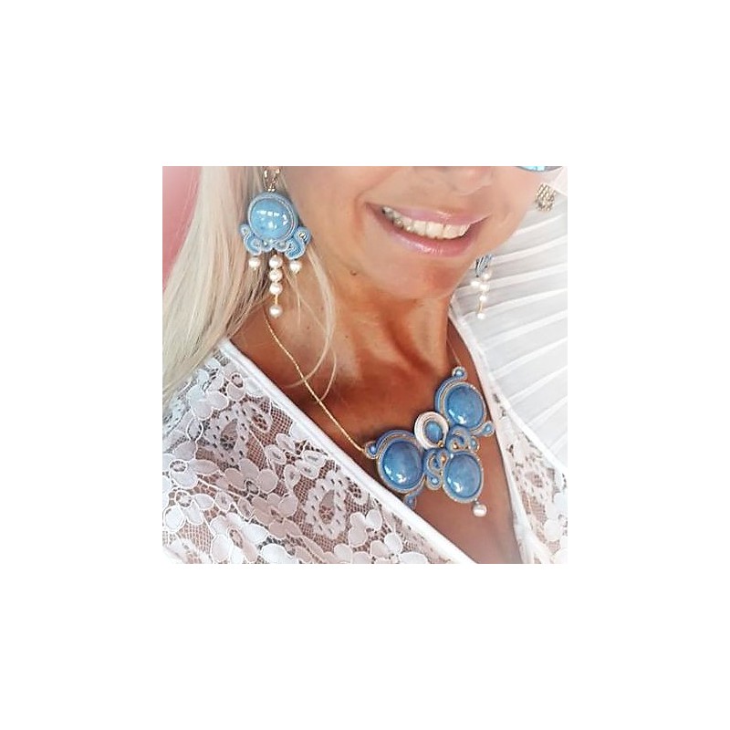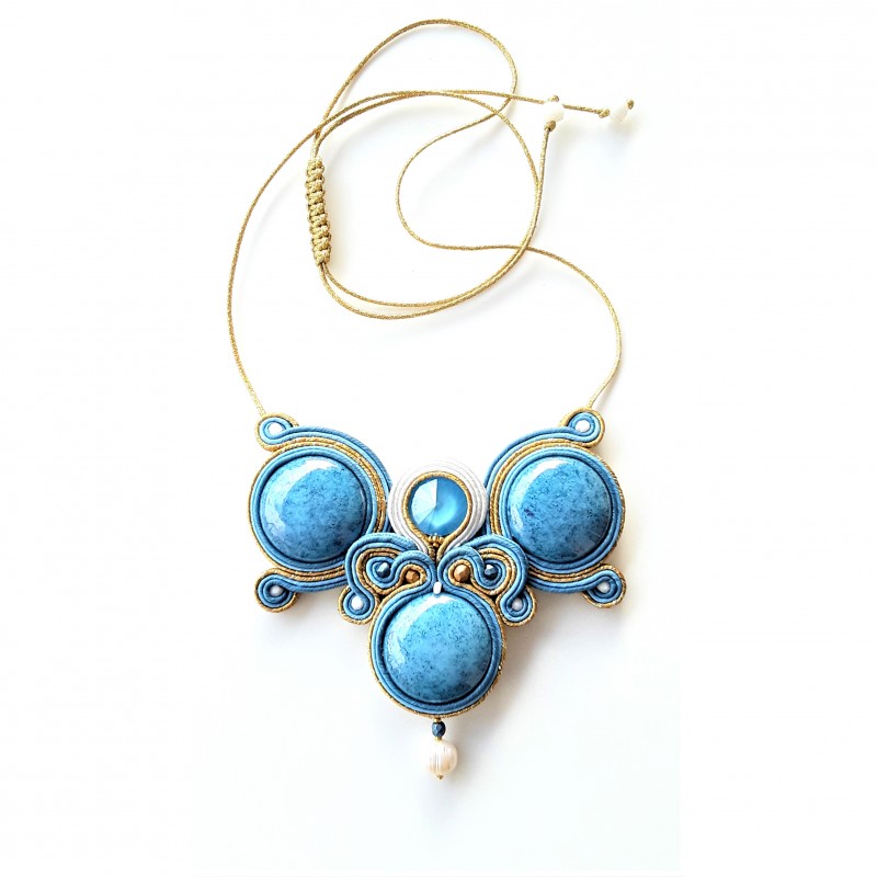 Hand embroidered necklace with Swarovski crystal, freshwater pearls, crystals & miyuki beads, beautiful glass cabochon, textile cords.